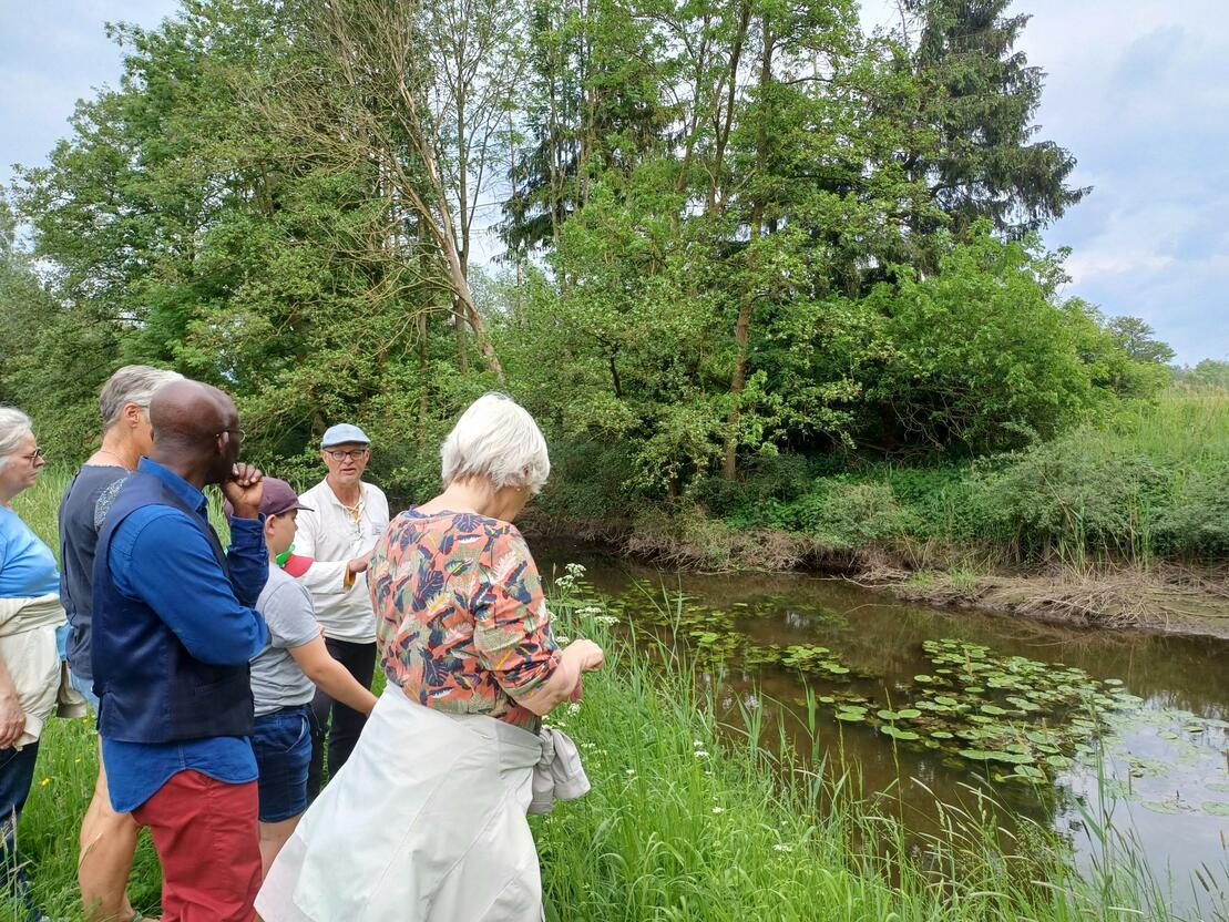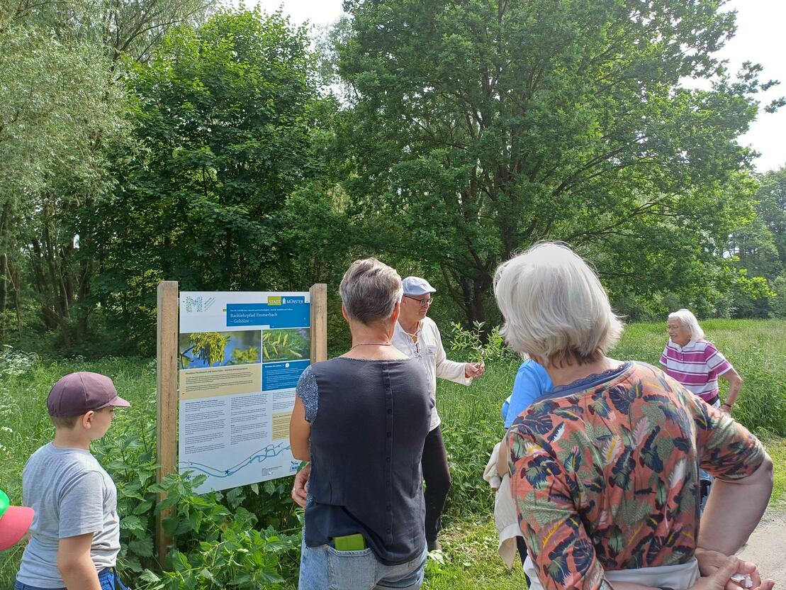 In Kooperation mit der Quartiersentwicklung Hiltrup-Ost und dem Spaziertreff des Emmerbach-Treffs lud die NABU-Naturschutzstation Münsterland im Rahmen eines naturkundlichen Spaziergangs am 17. Mai 2024 ein, den neuen Lehrpfad kennenzulernen und mehr über die Geschichte der Renaturierung zu erfahren. Während der fast zweistündigen Exkursion, die generationsübergreifend Interesse weckte, stellte der Diplom-Biologe und wissenschaftliche Mitarbeiter der NABU-Naturschutzstation Münsterland Dr. Thomas Hövelmann typische Pflanzen- und Tierarten des Emmerbaches den Teilnehmer:innen vor und gab ihnen die Möglichkeit, die Natur in ihrer Nachbarschaft nochmal ganz neu kennenzulernen. Zudem wies er auf die sogenannten Bachpatenschaften in Münster hin, denn speziell für den Emmerbach werden neue Paten gesucht. Schulen, Gruppen und Vereine wie auch Einzelpersonen/Familien können im Rahmen einer Patenschaft, “ihren” Bach durch Untersuchungen und Naturbeobachtungen besser kennenlernen. Sie können Vorschläge für eine ökologische Verbesserung ausarbeiten und nach Rücksprache mit den zuständigen Stellen meist auch selber umsetzen. Durch Öffentlichkeitsarbeit werben sie für Verständnis und richtigen Umgang mit dem ihnen anvertrauten Stück lebendiger Natur.
