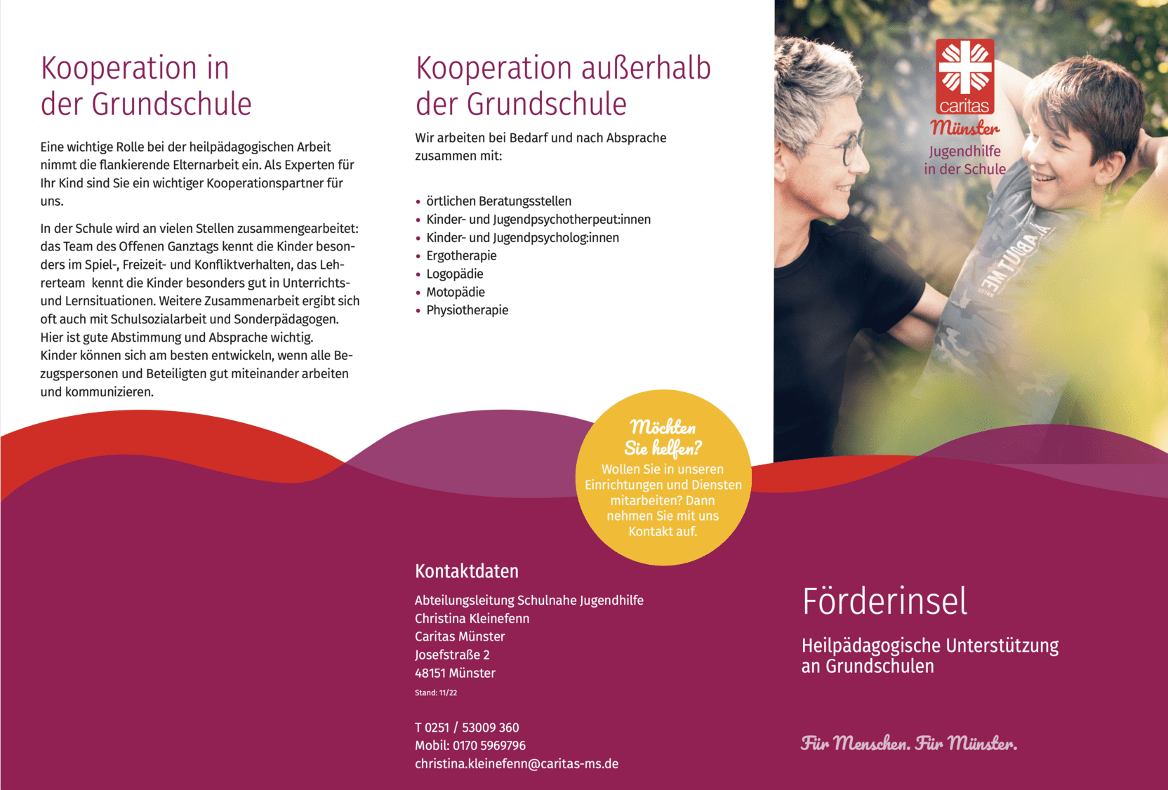 An 10 Grundschulen in Münster unterstützen, fördern und begleiten heilpädagogische Fachkräfte der Caritas Münster Kinder der ersten beiden Jahrgänge. Dabei arbeiten wir eng mit dem Offenen Ganztag zusammen.
